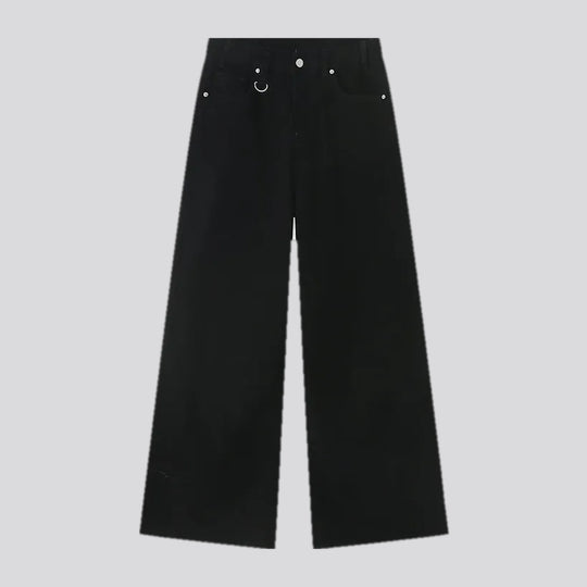 Mid rise stylish wide denim pants for ladies