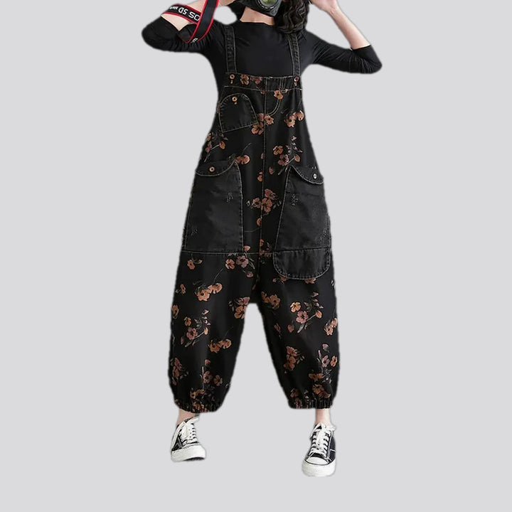 Boho baggy women's jeans bib