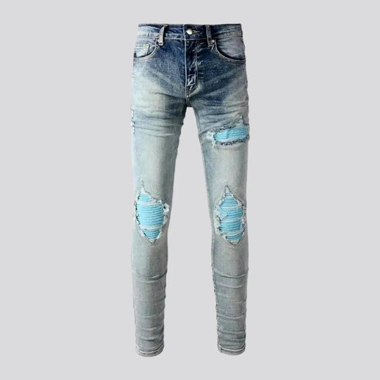 Wrinkled patchwork grey men's jeans