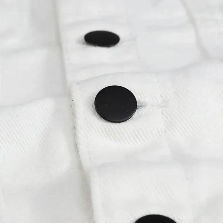 Be ahead of the vogue game with this slender white men's jeans vest. Its ageless design and impeccable craftsmanship make it a must-have for any fashion-savvy man. Perfect for the 2024 Spring-Summer season and beyond, this vest will elevate your style to new heights.