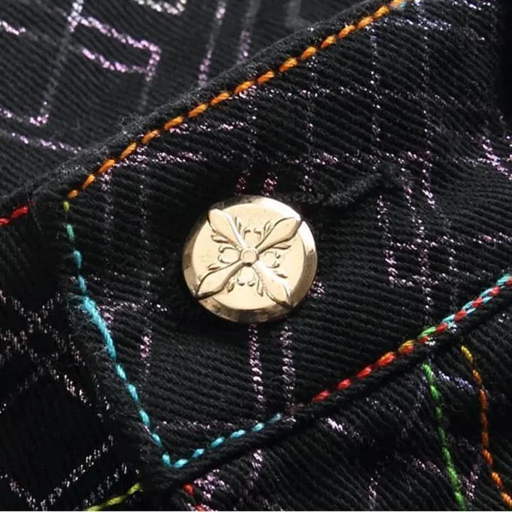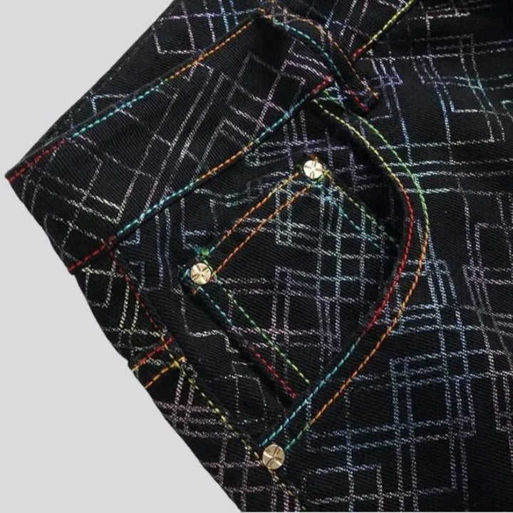 painted, skinny, ornament-print, color, black, mid-waist, 5-pockets, zipper-button, men's jeans | Jeans4you.shop