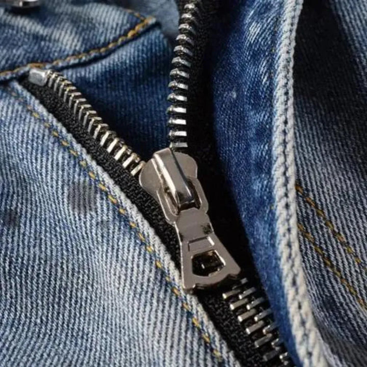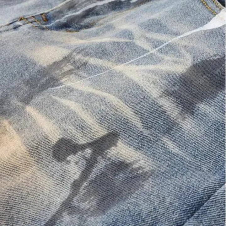 • Distressed Details: The distressed patches and paint splatters add a touch of edginess and character to these jeans, making them a statement piece.